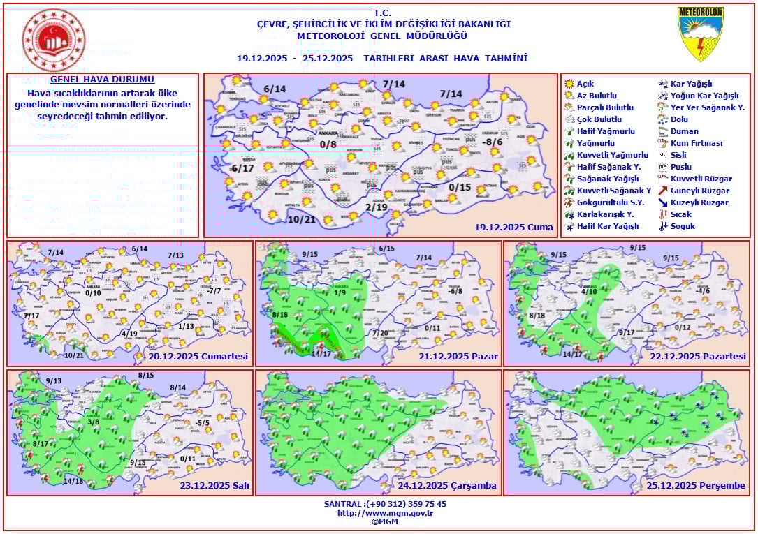 Yeni hava durumu raporuna göre, Türkiye genelinde bugün güneşli hava etkisini gösterecek. Güneşli havanın yurt genelinde etkisini sürdürmesi bekleniyor.