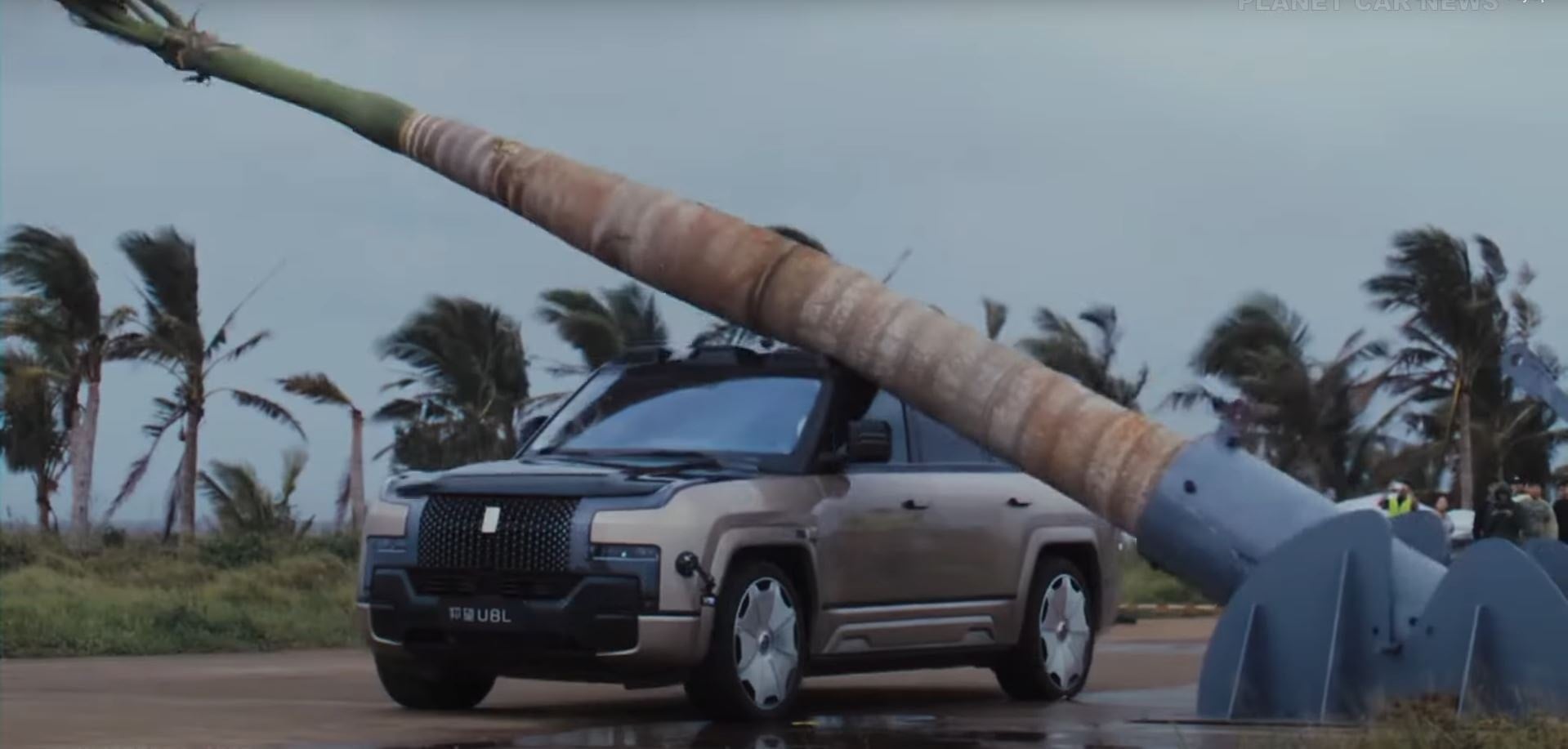 Çinli otomobil üreticisi BYD, üst segment SUV modeli Yangwang U8L’nin dayanıklılığını sergilemek için dikkat çekici bir test gerçekleştirdi. Şirket, yaklaşık 2 ton ağırlığındaki bir palmiye ağacını aracın üzerine üç kez bırakarak gövde dayanımını ölçtü.
