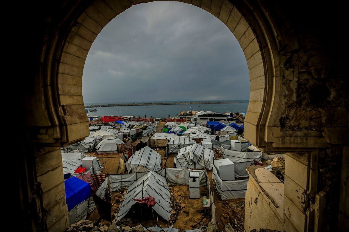 Vatandaşlar, Gazze kentinin batısındaki El-Reşid Caddesi boyunca kurulan derme çatma çadırlarda açlık ve soğukla baş başa kalmış durumda…